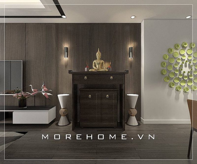 Mẫu bàn thờ phật cho chung cư với kiểu dáng đơn giản hiện đại được nhiều gia chủ yêu thích và lựa chọn