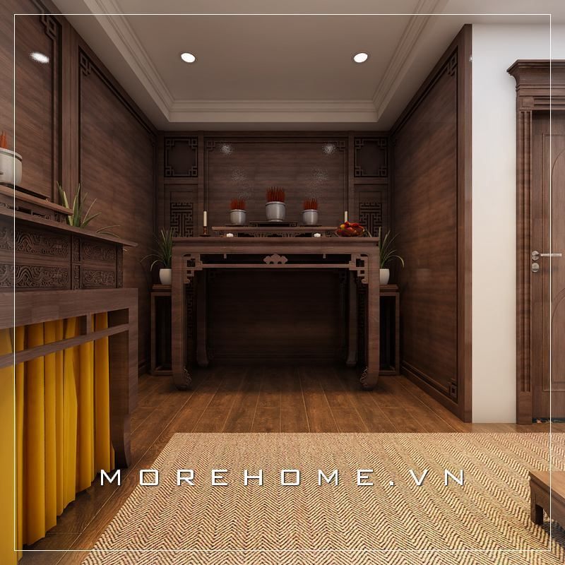 Với diện tích không gian phòng thờ hạn chế, thì mẫu bàn thờ gỗ tự nhiên trên là gợi ý tuyệt vời với kiểu dáng nhỏ gọn và hiện đại.