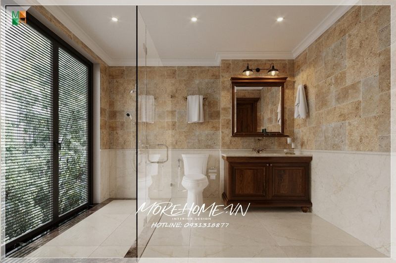 Thiết kế phòng tắm đơn giản nhưng sang trọng và tiện nghi với nội thất hiện đại ở một không gian thoáng đãng của biệt thự, nhà phố