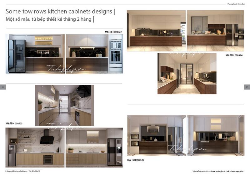 Một số mẫu thiết kế tủ bếp hiện đại được thiết kế thời thượng kiểu song song trong một không gian chạy dài tiện nghi