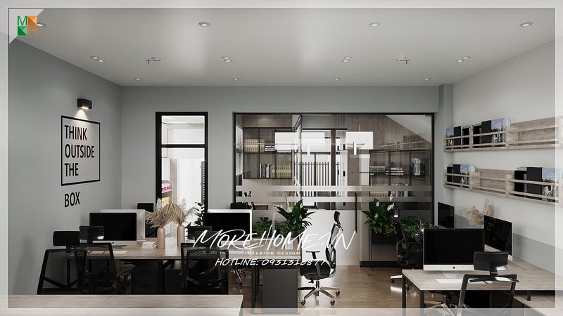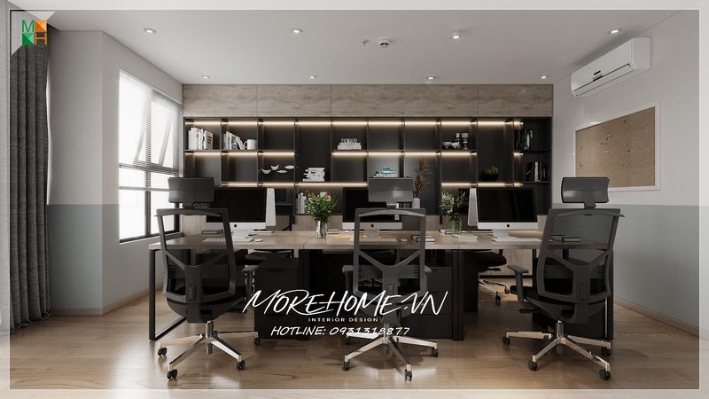 Bố trí nội thất phòng làm việc hiện đại, khoa học, vừa đảm bảo công năng trong quá trình sử dụng, đồng thời vẫn đảm bảo tính riêng tư của mỗi nhân viên