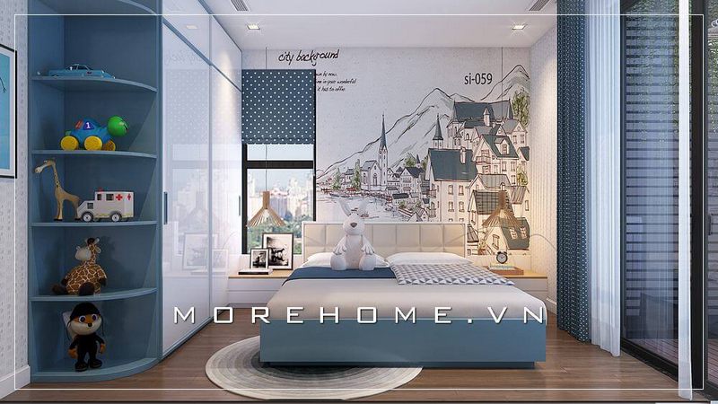 Mẫu thiết kế phòng ngủ bé trai hiện đại, nội thất bằng gỗ công nghiệp tinh tế là sự lựa chọn hoàn hảo cho phòng ngủ diện tích nhỏ