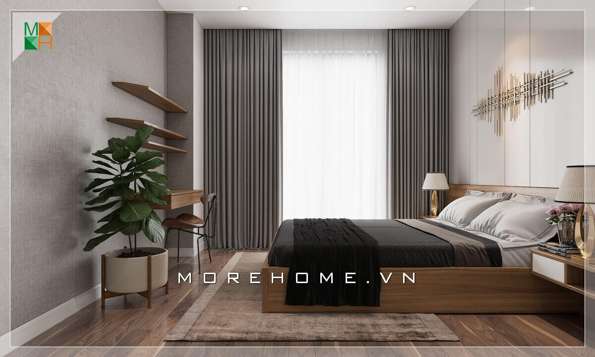 Thiết kế phòng ngủ có bố trí nội thất đơn giản, hiện đại không rườm rà cầu kì nhưng tiện lợi và sang trọng độc đáo cho không gian biệt thự, nhà phố.