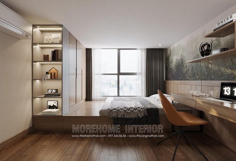 Tủ quần áo phòng ngủ chung cư hiện đại đầy ấn tượng, kết hợp kệ tủ trang trí vô cùng tiện dụng
